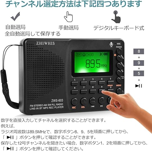 ZHIWHIS FM/AM/SW ラジオ レコーダー MP3プレーヤー ポータブル 充電式 大容量リチウム電池 LCD画面 立體聲 スリープ機能 電源オフメモリ機能 バックライト 日本語ディスプレイインターフェイス (緑の光) a | PCBASE