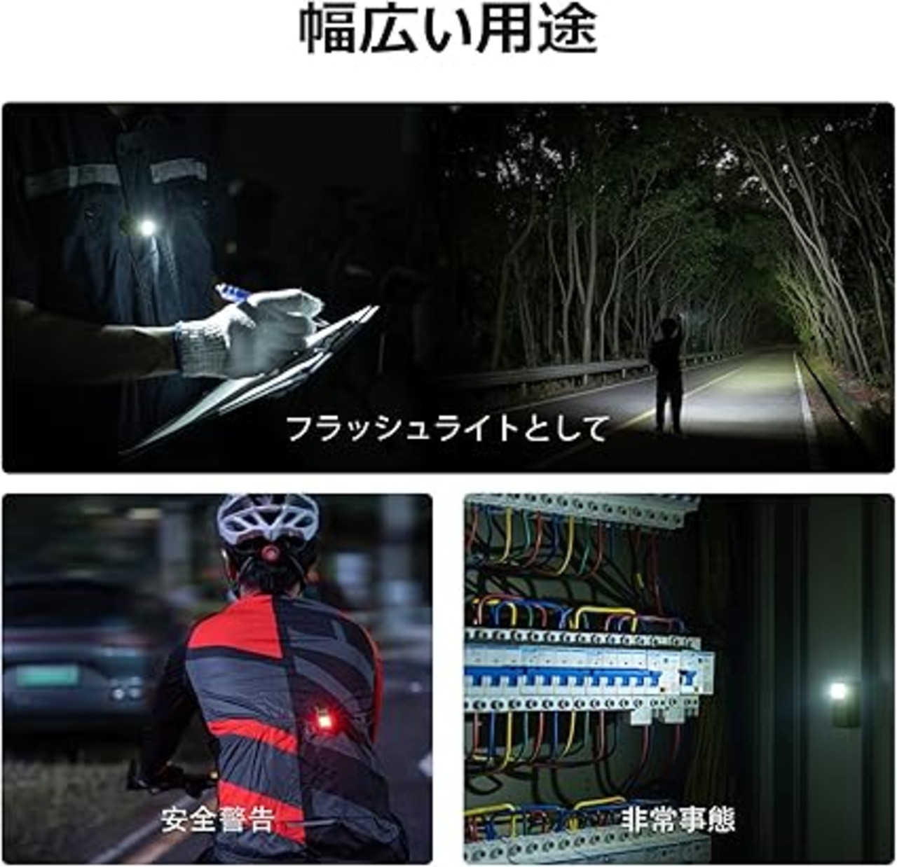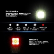 [ 二種類のLED光源&多目的] 白光&赤光二種類のLED光源を搭載しており、五つの常時点灯モード(Highモード、Mediumモード、Lowモード、Moonlightモード、赤点灯モード)があり、明るさは最大300ルーメンで、照射距離最大約70メートルに達します。小型懐中電灯としても使用でき、ランニング、散歩、ジョギング、点検、登山、キャンプなど様々なアウトドアシーンに大活躍します