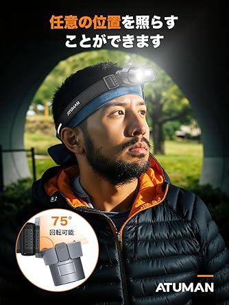 ATUMAN ヘッドライトMH1 【高輝度?多機能LEDヘッドライト】Type-C充電式 8種点灯モード 800ルーメン 赤&白ライト SOS点滅 75°角度調整可能 手振りセンサー付き ヘッドランプ 8時間連続使用可能 IPX4 防水防塵 軽量 持ちやすい 多用途 最適 夜釣り 登山 散歩 作業 メンテナンス アウトドア キャンプ 乗り 1個入り a | PCBASE