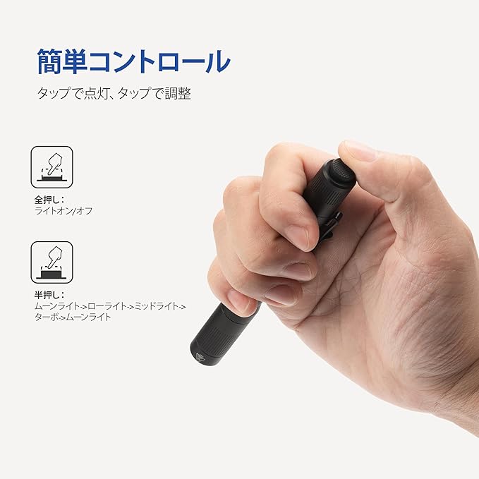 650高ルーメン懐中電灯:このコンパクトなペン型懐中電灯は4つのモードを提供します。(ハイからムーン:650LM/150LM/50LM/1LM)、高性能LEDビーズを搭載し、瞬時に近距離の検索に強力な照明を提供する超明るい650ルーメンを解放します。