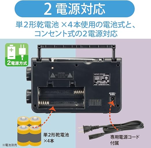 【 仕 様 】 ◆電源:AC100V(50/60Hz)、DC6V 単2形乾電池×4本使用
