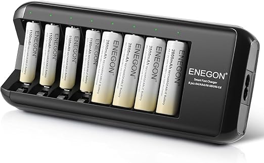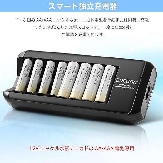 ENEGON 単3単4充電池セット 8スロット充電器付き 充電式電池 単3形2800mAh×4本+単4形1100mAh×4本 スマホ対応 ニッケル水素/ニカド充電池用 防災グッズ 収納ケース付 a | PCBASE
