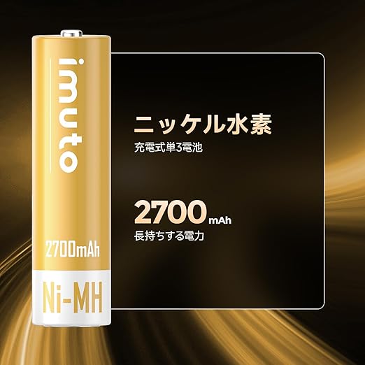 imuto 充電式ニッケル水素電池 2700mAh 8本入り くり返し回数1000回 a