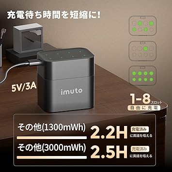「1.5V充電池&2.5H急速充電」imuto 1.5V定電圧出力の充電式単3リチウム電池は、放電サイクルを通じて、一定で安定した1.5Vの電圧出力を提供ます。1.2Vニッケル水素電池よりも強力で、複数のデバイスに対応することができま