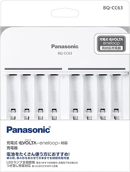充電時間:単3形×8本を約5時間で充電可能(※スタンダードモデル(BK-3MLE、BK-3MCC)充電時)/単4形×8本を約3時間で充電可能(※スタンダードモデル(BK-4MLE、BK-4MCC)充電時)