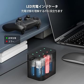 単三 充電池 リチウム 1.5V 8本入りセット 3000mWh充電池 1600超長持続時間 自然放電抑制 2.5h急速充電 LED充電インジケータ 磁気設計 充電器の組み合わせ 電池収納 12月品質保証 日本語取扱説明書付き (3000充電池8本+充電器) a | PCBASE