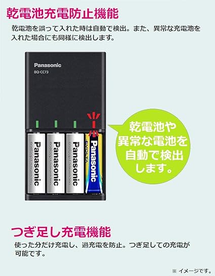 残量チェック機能:電池を1本ずつセンサーを用いて状態を判別・制御するセンシング充電機能搭載