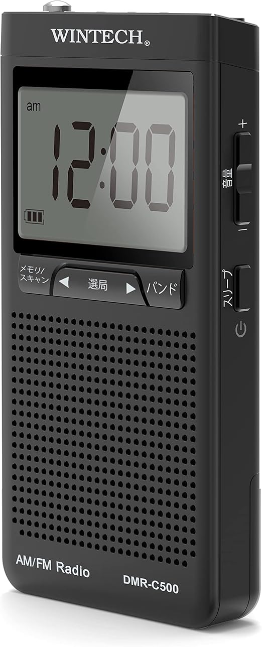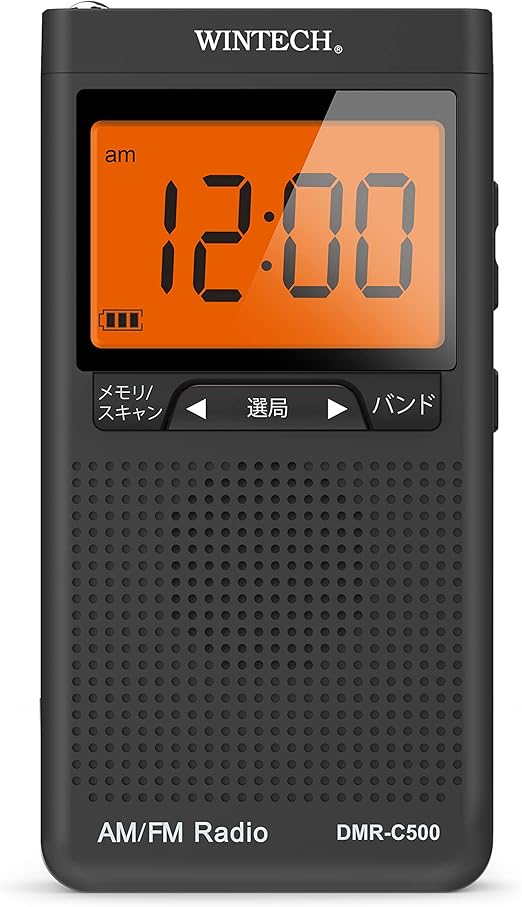 WINTECH【 AM/FMポータブルデジタルラジオ】DMR-C500 ワイドFM/ハイウェイラジオ対応 アラーム付き時計 大型ディスプレイ 単三電池×2本(別売) ステレオイヤホン付属 a | PCBASE