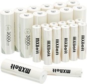 MXBatt 充電式ニッケル水素 充電式電池 (単3充電池3000mAh 12本+ 単4充電池1100mAh 12本) 単三単四充電池 セット 1.2V (約1200回循環使用可能)PSE認証済み 自然放電抑制 液漏れ防止設計 a | PCBASE