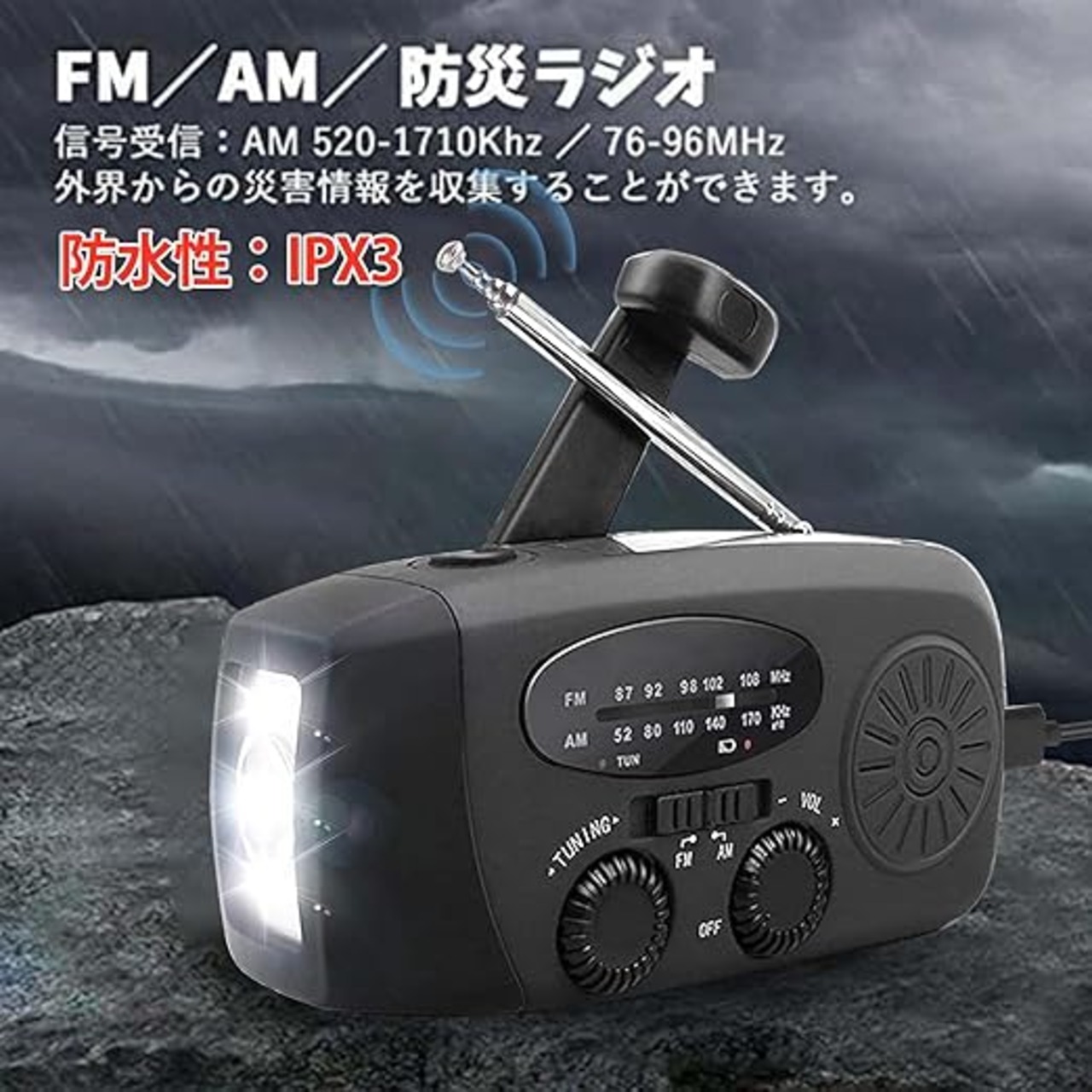 【多機能防災ラジオで災害に備える】自然災害は予測が難しいですが、事前の準備が重要です。この多機能ラジオは、AM/FMラジオ、3種類の充電方法、LEDライトを搭載し、2000mAhの大容量バッテリーでスマートフォンの充電も可能。軽量コンパクト設計(235g、12.8x6.0x4.5cm)で、緊急時に持ち運びやすく、防災グッズとして最適です。ソーラー充電や手回し充電にも対応し、日常生活や災害時の強い味方になります。