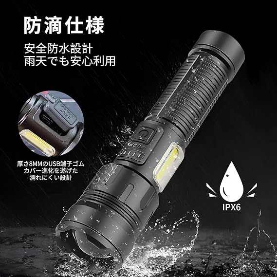 懐中電灯 防災【防災士監修・極高輝度・XHP160LED】5000mAh 最強 軍用 ledライト ハンディライト Type-C充電式 白・赤COB 高輝度 7モード調光 18650バッテリー付 アルミニウム合金 IPX6防水 ズーム式 耐衝撃2M 機能 自転車 停電 防災 地震 作業用 夜釣り キャンプ 登山 護身用 避難対策 夜間訓練 a | PCBASE