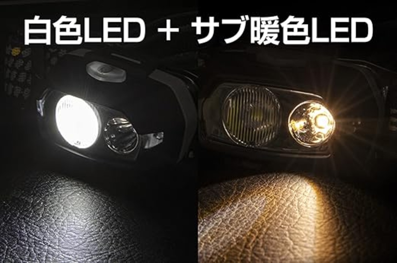 明るさ:High/300ルーメン・Mid/100ルーメン・Eco/30ルーメン、サブ暖色LED/6ルーメン、使用電池:単4形アルカリ電池×2本