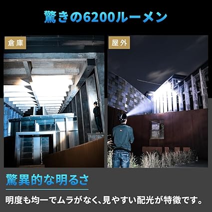 【超高輝度 LED ヘッドランプ】 このヘッドライトは、P50高輝度ライトビーズを搭載しており、影なしで集中した明かりを提供します。6200ルーメンという強力な明るさを誇り、最大照射距離は300mに達します。これにより、周囲を広く照らし出し、危険をしっかりと回避できます。夜の散歩や暗い場所での活動にも安心して使用できます。