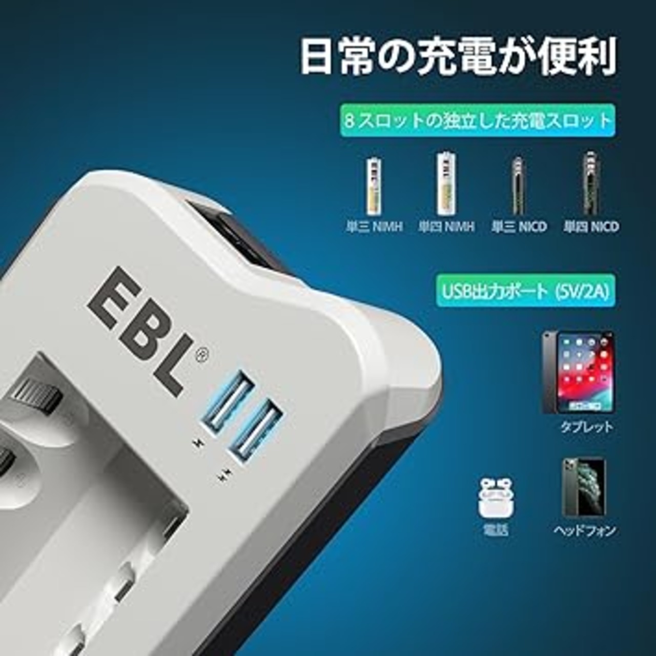 EBL単4電池 充電式 充電器セット 充電池 単4*16本パック(1100mAh) +充電器 スマホ充電可 単三 単四ニッケル水素/ニカド充電 防災電池 収納ケース付き たんよん電池充電式 a | PCBASE