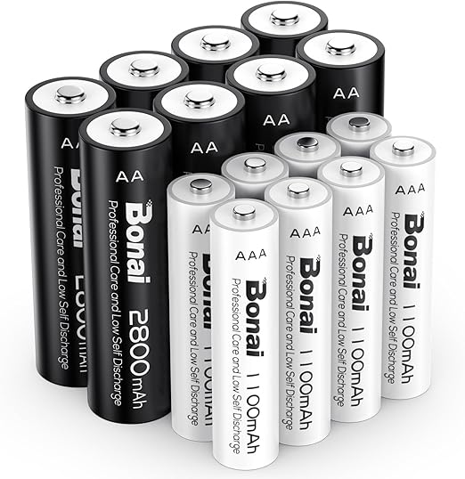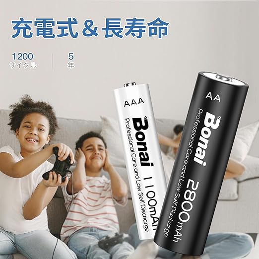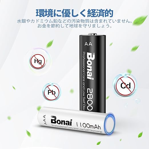 【大容量単3単4電池 充電式】単3単4電池 充電式ニッケル水素電池16個パック。電池容量は2800/1100 mAhで、超大容量で長時間使用できます。電圧は1.2 Vで、非常に安定しており、約1200倍の再利用が可能な。ほとんどの1.2vバッテリー充電器と互換性のあるBonai充電式バッテリー。電気機器に害を及ぼすことはない。注:使用しないときはバッテリーを完全に充電し、2か月ごとに充電してください。