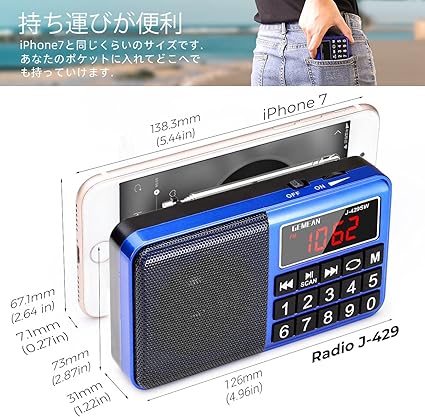 目に優しい:1) 見やすくて大きなゴム製のボタン、クリアな大画面。2) 使いやすい、手動でのチューニング不要、ひとつのキーで受信可能な全てのステーションを検索、最大297ステーションを保存可 能 (X99 FM、X99 SW、X99 AM)、小型本体なのに大音量!(手動メモリー機能なし)