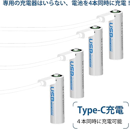 UNNIK 単4電池 充電式 4本セット 約1000回使用可能 600mAh/900mWh 1.5V定出力 リチウムイオン 単4形充電式電池 急速充電 保護回路付き エコ AAA電池 TYPE-C充電ケーブル付き (単4形充電池-4本セット) a | PCBASE