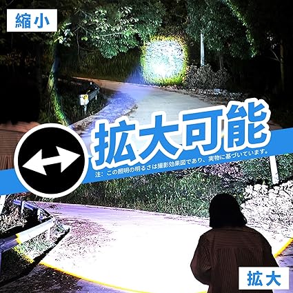 【戦術級超強照明システム & 9種類の照明モード & 伸縮ズーム機能】懐中電灯は高出力の