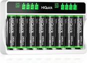 HiQuick 充電池充電器セット 単3電池+充電器セット 単三 単四 ニッケル水素、ニカド充電池に対応 8スロット 自由充電可能 LCD付き 急速充電器 じゅうでんち単3 充電器セット(8本2800mAh) a