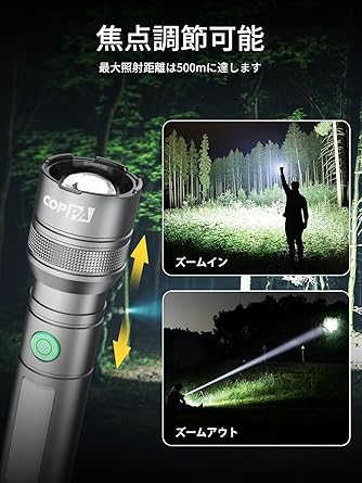 COPPA LED懐中電灯 SD-5305,【2025新登場・アルミ合金製・赤色灯モード】高輝度ハンドライト フラッシュライト 強力 6モード調光 サイドライト ズーム調節 赤色ストロボ アルミニウム製 耐久 落下衝撃 充電式 軽量 コンパクト 持ち運び便利 非常灯 アウトドア用 キャンプ 登山 夜釣り 作業 メンテナンス 防災/停電/緊急用 日本語取扱説明書 a | PCBASE