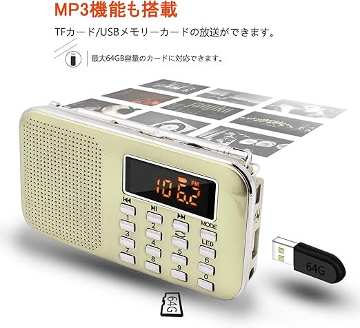【小さい・軽い】小型で、使いやすい超薄型、小さい体で大音量、持ち運び便利な充電式 AM FMラジオです。家/公園/畑仕事どこても適用で、もっと遠い郊外、キャンプ、登山、海に作業の人に天候・ニュースを聴くのにも適用です。