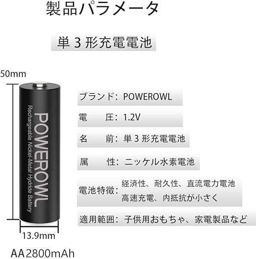 【充電池 充電器】単三単四充電電池兼容性充電器1個 、最大8つの電池を同時に充電できる。単三充電電池8個、バッテリー容量は2800 mAhで、大容量で長時間使用できます。電圧は1.2 Vで、非常に安定しており、電気機器に害を及ぼすことはない。