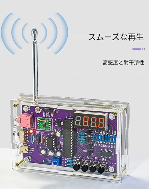 zmart DIY FM ラジオ 電子キット 調整可能な 周波数 87-108MHz デジタル ディスプレイ DIY はんだ付け プロジェクト 練習用 はんだ RDA5807S 日本語説明書つき a | PCBASE