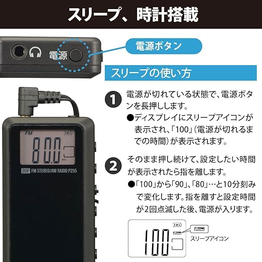 【 特 長 】 ◆本体約30gの軽量ミニサイズでお出かけや通勤に便利 ◆選局しやすいデジタル表示、液晶ディスプレイ ◆ATS自動選局、AM/FM各30局メモリー登録 ◆ノイズが少ないDSPデジタル高感度受信