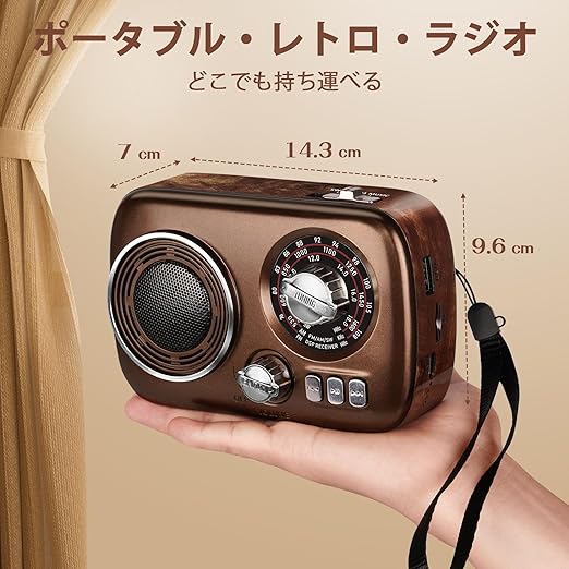 Gelielim 小型ポータブルラジオ 高感度 ラジオ AM/FM/SWラジオ USB/TFカード対応 MP3プレーヤー 大音量 レトロラジオ 大容量 電池/USB充電 対応 屋内および屋外使用 日本語取扱説明書 a | PCBASE