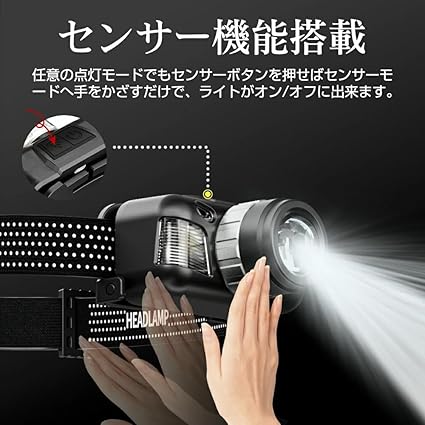 ヘッドライト USB充電式 大容量1200mAh 高輝度 LED 800ルーメン 手振りセンサー機能付き 4種点灯モード 防水防塵 30°角度調整可 最適 登山 キャンプ 散歩 作業 夜釣り アウトドア 災害 停電用 小型 超軽量 ヘッド ライト a | PCBASE
