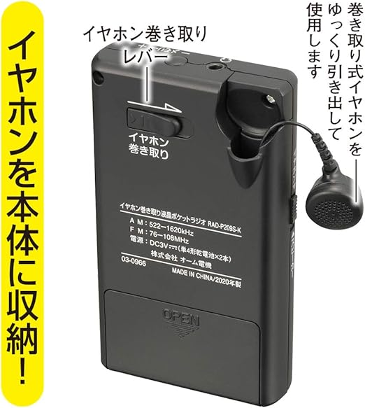 AM、FMステレオ(付属のステレオイヤホン使用時)受信
