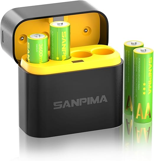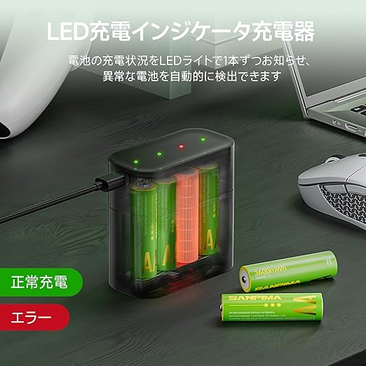 sanpima 単3形充電式リチウム電池4本 1.5V 大容量 3600mWh/2400mAh、約1600回循環使用可能 自然放電抑制 環境保護 電池収納【LED充電インジケータ付き】充電器の組み合わせ a | PCBASE