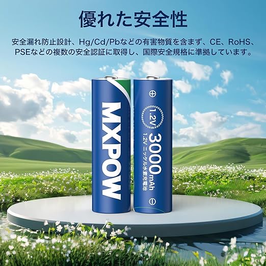【大容量・高耐久】ニッケル水素電池は、AA 3000mAh、AAA 1100mAhの大容量を実現。1200回以上の充電が可能で、一度の充電で長時間使用できるため、頻繁な充電を避けることができます。