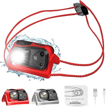 [TeamOneDay] 箱根駅伝ランナー監修 ヘッドライト ランニング アウトドア USB充電式 軽量 防水 MINI LED HEADLAMP 【220ルーメン/38g】 ギフトに最適 (レッド) a | PCBASE