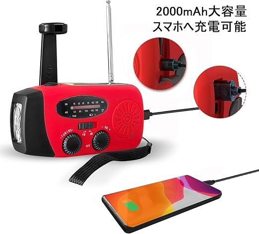 【強力な防災ラジオ】 自然災害を予測するのは難しいですが、事前に準備することができます。 この応急多機能ラジオは、AM / FM、3つの充電方法、懐中電灯をサポートし、2000mAhリチウム電池はモバイル電池として使用できます,iphoneやAndroid全スマホ充電対応可能。本体は220 g、12.9x6.0x5.0cmと軽量でコンパクトで,緊急救命ラジオにも最適です。防災ラジオ 充電 ソーラー 手回し,生活をより便利にする 。
