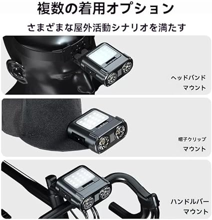 【90℃超広角・高輝度のヘッドライト】非常に明るいLED COBライトを採用し、超広角で超高輝度を実現し、90度角度調整も可能で、暗い夜の道でも安心して過ごすことができます。
