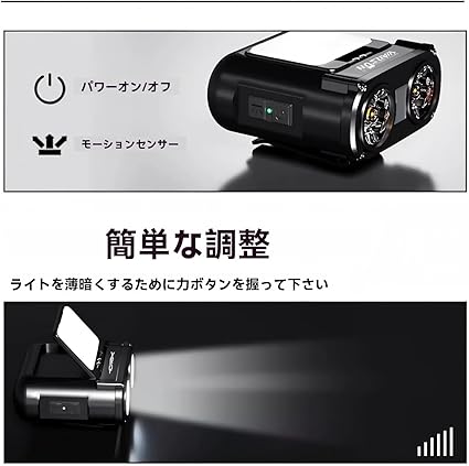 【5種の点灯モード】ヘッドライトは5種の点灯モードを搭載し、電源スイッチを押すと、メインライト—サイトCOBライト