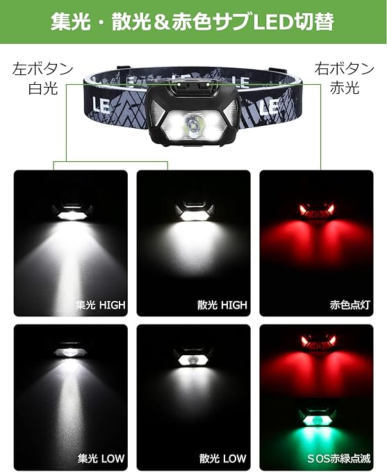 ヘッドライト 充電式 USB-C ledヘッドライト 高輝度 LED ヘッドランプ 2個セット 【集光・散光切替/ 明るさ300ルーメン/ 実用点灯4〜30時間/ IPX4防水/Type-cケーブル付き】 赤色サブライト搭載 夜釣り 最適 登山 キャンプ 散歩 作業 釣り アウトドア 災害 停電用 小型 軽量 ヘッド ライト a | PCBASE