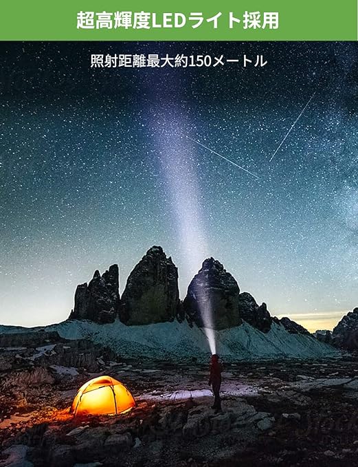 【初心者最適・高輝度ヘッドライト】初心者にも使いやすいヘッドライトとして、登山や釣りなどのアウトドア活動に軽々と対応可能!明るさは300ルーメンで、照射距離最大は約150メートルです。夜の散歩や暗い場所での活動にも十分な高輝度ヘッドライトです。
