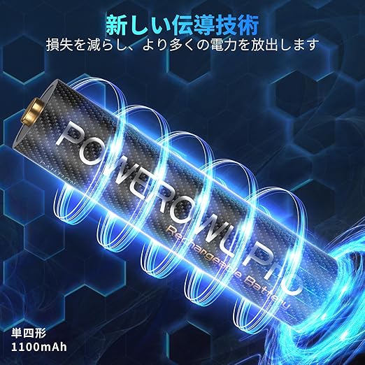 高容量: 1100mAh 1.2V 16 パック ニッケル水素 単4 充電式電池。