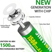 【大容量と互換性】単三電池充電式ニッケル水素電池。 バッテリー容量は1500mAhで、長時間使用できます、1200回の充電を繰り返し使うことができます。電圧は1.2 Vで、非常に安定しており。ほとんどの1.2vバッテリー充電器と互換性のあるJINTION充電式バッテリー、電気機器に害を及ぼすことはない。