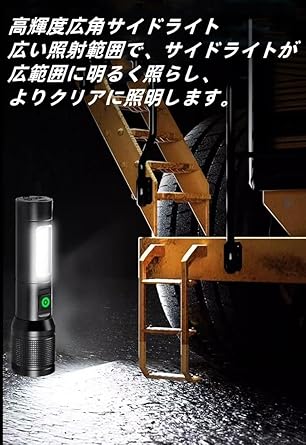 懐中電灯【2025年最新 強化型】高輝度LEDライト 夜光 ハンドヘルドトーチ 白色・赤色COB作業灯/ 6段階調光/最大照射距離500m/ 大容量バッテリー 連続点灯最大16時間/Type-C急速充電/スマート放熱設計 可変ズーム機能 アルミ合金製耐衝撃ボディ/IPX6防水対応/携帯便利なコード付き/キャンプ・防災・登山・夜釣り・作業用・停電時に最適 a | PCBASE
