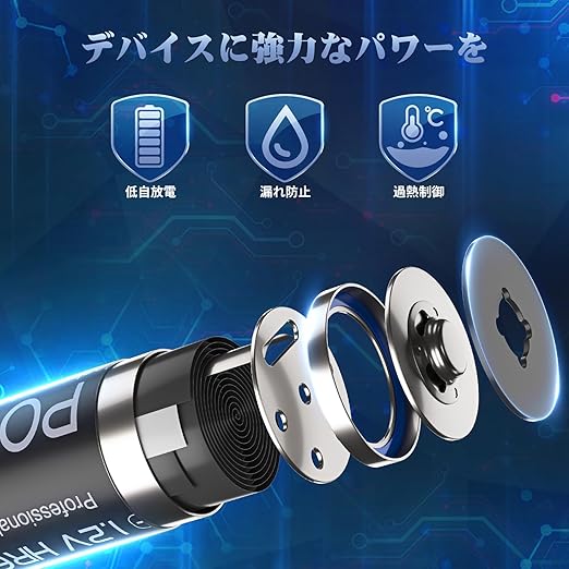 【経済性 耐久性】独特の低分解技術は、何度も循環使用することができ、1200回の使用が可能となる。1つのニッケル水素の充電プールの作用と1200節の普通の乾電池の作用と同じですが、しかし、経済的で耐久性。優れた自放電抑制技術は