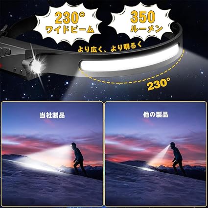 【革新的なデザイン-ジェスチャーセンシング機能】:従来のヘッドライトと比較して、このヘッドライト 充電式 ledはジェスチャーセンシングの機能がアップグレードされています。ライトモードを選択した後は、センサーに手を振るだけでライトのオンとオフを制御できます。頭に装着することで、懐中電灯を持っているという不便さを解消するだけでなく、手を完全に解放します。あなたの経験に最大の利便性を提供します。