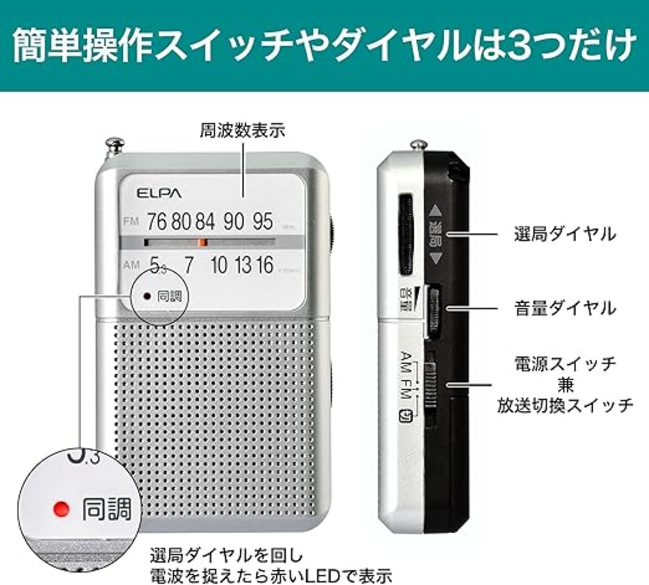 エルパ (ELPA) AM/FM 電池長持ちラジオ (アナログ + 長持ち) ラジオ/防災 (ER-P80F シルバー) a