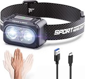 Tebool ヘッドライト Type-C充電式 大容量1200mAh 高輝度 LED 600ルーメン 手振りセンサー機能付き 6種点灯モード 赤&白ライト SOS点滅 頭につけ ヘッドランプ 防水防塵 60°角度調整可 夜釣り 最適 登山 キャンプ 散歩 作業 釣り アウトドア 災害 停電用 小型 超軽量 ヘッド ライト a | PCBASE