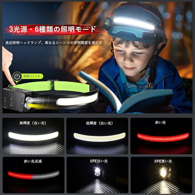 LED ヘッドライト 【2025超広角遠近照明・白&赤&黄3光源?ランニングライト】USB充電式 6つの照明モード 反射バンド設計 COB作業灯 小型 超軽量 明るい ヘッドランプ センサー ヘッドランプ ヘルメットライト 大容量バッテリ Type-C 電池式 へっどらいと 長時間 防水 防災 アウトドア用 キャンプ 夜釣り 登山 作業用 最適 a | PCBASE