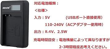用途:カメラ、ビデオ用互換USB式リチウム充電器です。純正充電器と同じようにご利用いただける。