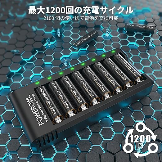 高容量: 2800mAh 1.2V 8 パック ニッケル水素 単3 充電式電池。
