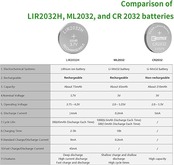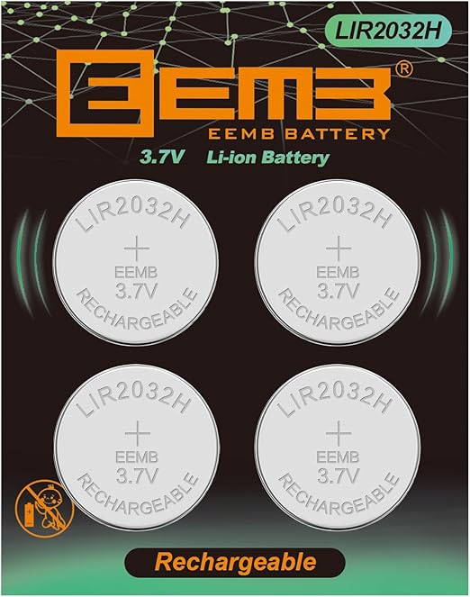 基本情報——電圧:3.7 V、容量:70 mAh、重量:約2.6グラム、直径:20 mm、高さ:3.2 mm。EEMB専用充電器を使用して電池を充電してください。包装は:LIR 2032 H電池X 4を含む。注意:製品ロットごとに包装が異なる場合があります。
